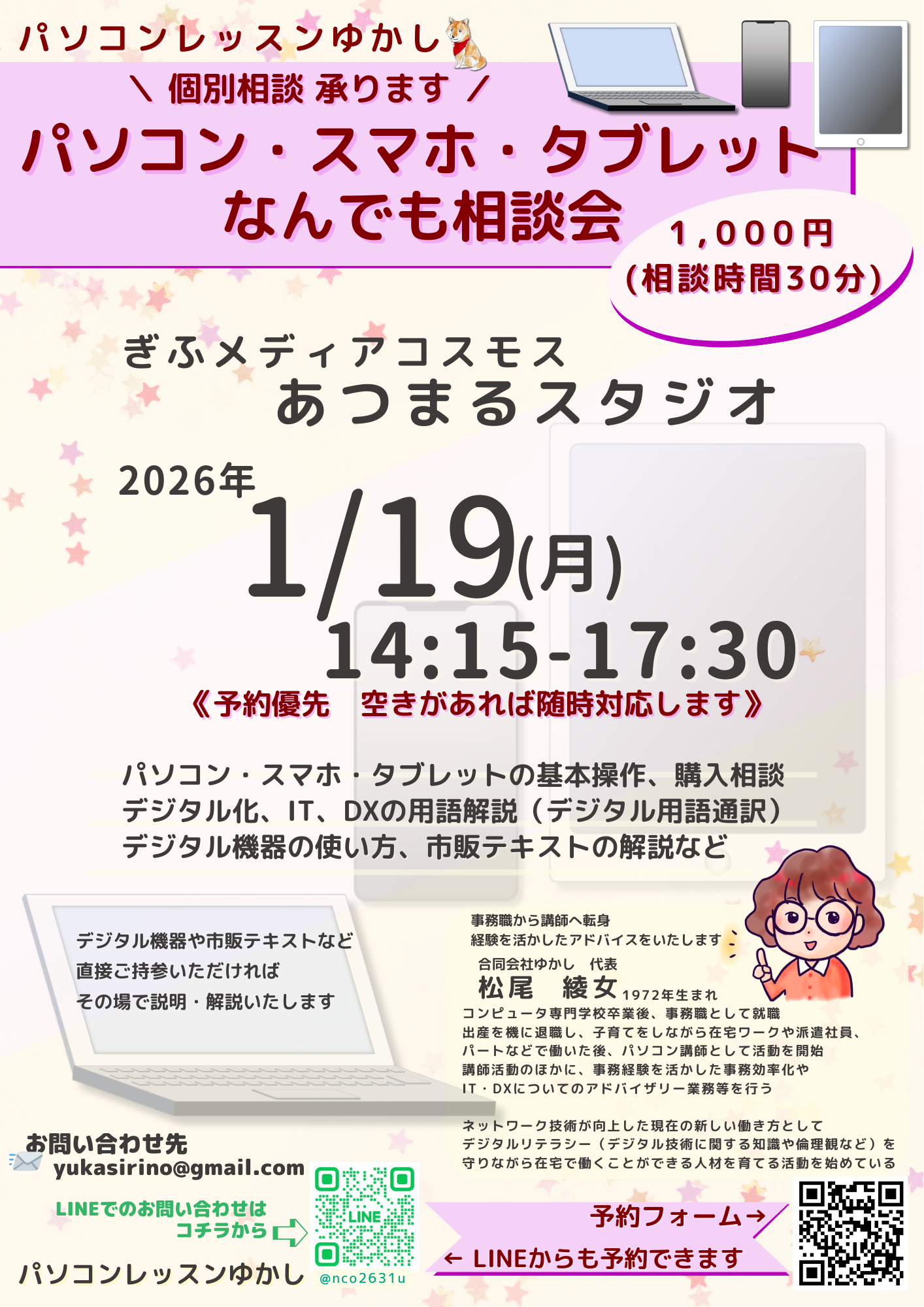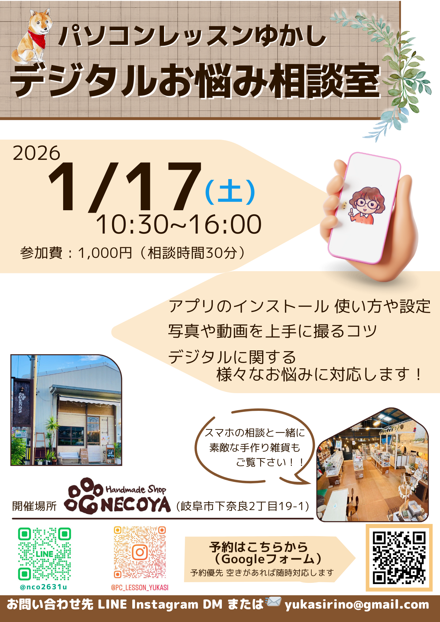 ぎふメディアコスモス、HandMadeShop conecoyaにて相談会や各種パソコン講座、セミナーなどを開催しています