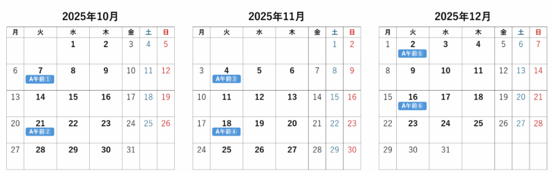 火曜日A 午前コース(10:00~11:30)のみ開催